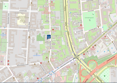 Die Klausenerstraße selbst ist geprägt von stilvollen Altbauten und gepflegten Wohnhäusern, die eine ruhige und angenehme Nachbarschaft ausmachen. Hier genießen Sie die Vorzüge einer ruhigen Wohnlage, ohne auf die Nähe zu den wichtigsten Einrichtungen des täglichen Lebens verzichten zu müssen. Nur wenige Gehminuten entfernt finden Sie diverse Einkaufsmöglichkeiten, darunter Supermärkte, Bäckereien und Drogerien. Auch kleinere Boutiquen, Cafés und Restaurants bieten sich in unmittelbarer Nähe an und laden zum Verweilen ein.