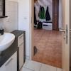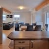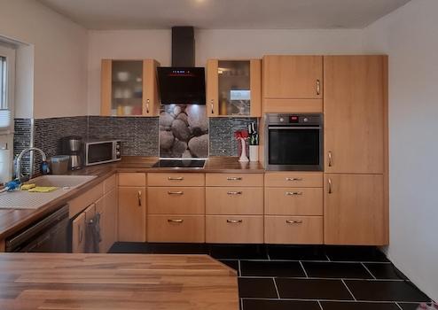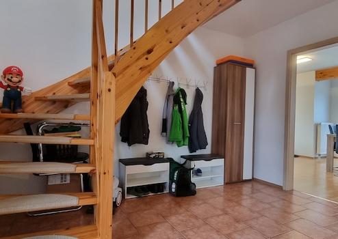 Der Eingangsbereich ist großzügig, so dass der Besuch sich nicht vor dem Eingang stauen muss. Von hier gehen der Hauswirtschaftsraum, das kleine WC und der Wohn-Küchenbereich ab – siehe Video bzw. Bilder. Auf der rechten Seite befindet sich die Küche mit mehr Platz und Stauraum als üblich. Diese als „U“ gehalten Küche ermöglicht es alles, was benötigt wird, schnell zur Hand zu haben. Gleich dahinter ist der große Essplatz mit gut 8 Plätzen. Hier ist die Köchin oder der Koch gleich mitten drin, kann mit seinen Gästen reden.