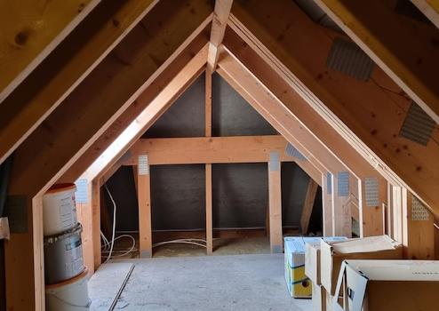 Für warmes Wasser sorgt auch die Solareinrichtung auf dem Dach. Hinter dem Carport befinden sich ein Hundezwinger und Platz, um das Holz für den Kamin in Ruhe trocknen zu lassen.