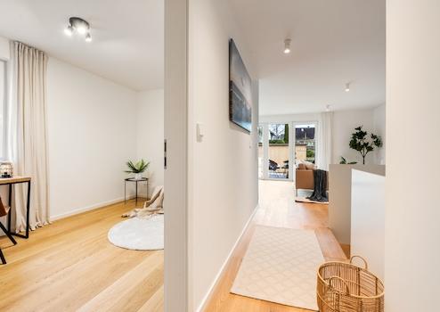 Die angebotene Wohnung Nr. 1 im Erdgeschoss erstreckt sich über zwei Wohnebenen, verfügt über ca. 90,51 m² Wohnfläche, 3 Zimmer, ein modernes Tageslichtbad mit Dusche & Wanne, ein Gäste-WC und einen Abstellraum. Zur Wohnung gehören außerdem eine Terrasse und ein Sondernutzungsrecht an einer Gartenfläche sowie ein Carport mit separater Abstellmöglichkeit.