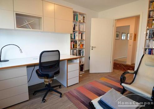 Weiterhin gibt es ein Schlafzimmer mit Doppelbett und großem Schrank, ein Arbeitszimmer mit einem Schreibtisch.