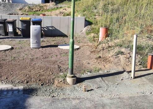 Das Grundstück ist mit Trinkwasser, Telekom, Elektroanschlußsäule, Abwasser und Regenwasser erschlossen. Die Anschlüsse sind 1 m auf die Grundstücke vorverlegt. Der Abschluss des jeweiligen Versorgungsvertrages mit den Medienträger obliegt dann dem Bauherren. Die Entsorgung Abwasser erfolgt über eine gemeinschaftliche biologische Kleinkläranlage, die Anlage wurde bereits in Betrieb genommen. Die Kosten für sämtliche Erschließungsmaßnahmen sind im Kaufpreis enthalten. Alle erforderlichen Genehmigungen liegen vor. Für die Ableitung des Niederschlagswassers liegt auch ein Anschluss auf dem Grundstück, die wasserrechtliche Erlaubnis für die Ableitung ist erteilt. Die Retentionszisterne ist dann Sache des Bauherren.