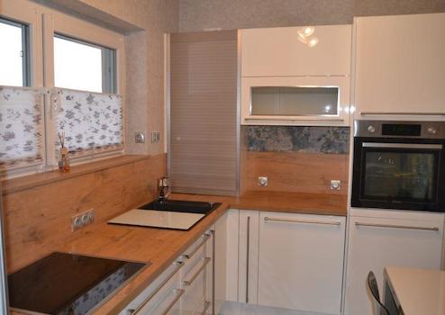 Im Jahr 2019 wurden die Küche und die Sanitär- und Elektroinstallationen umfassend saniert. Im Rahmen der Elektroarbeiten wurde der Sicherungskasten von der Küche in die im späteren Verlauf des Textes näher beschriebene Abstellkammer verlegt. Die hochwertige Einbauküche ist mit allen Annehmlichkeiten einer modernen Küche ausgestattet, einschließlich eines integrierten Radios.