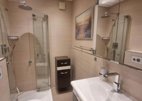 Das moderne Duschbad wurde im Jahr 2011 umfassend saniert. Im Rahmen der Sanierung wurde eine elektrische Fußbodenheizung installiert. Im linken Zwischenflur befindet sich die Abstellkammer, die in keiner Wohnung fehlen sollte.