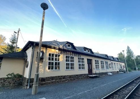 Der alte Bahnhof in Schmiedeberg (bei Dippoldiswalde) an der Eißeritztalbahn ist ein historisches Gebäude mit vielfältiger Nutzung. Das charmante Anwesen, welches 1924 erbaut und 2004 mit einem Anbau flächentechnisch verdoppelt wurde umfasst zwei Wohnungen sowie einen Gewerbebereich, der von einem versierten Restaurator für Mosaikkunst genutzt wird. Dieser Bereich dient als Lager, Büro und Werkstatt, in der die faszinierende Kunst des Mosaikrestaurierens zum Leben erweckt wurde.