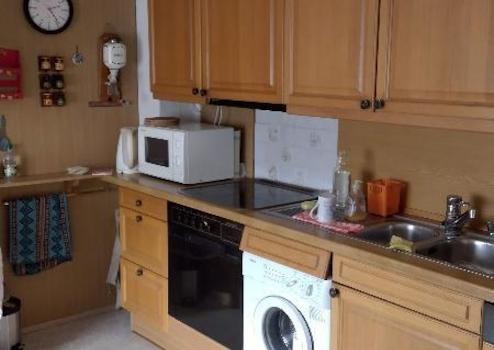 Die darüber liegende Wohnung hat ein großes Wohnzimmer mit Balkon, Schlafzimmer, Küche Bad mit Wanne. Von der Küche gelangen Sie ins teiausgebaute Dach mit einem Schlafraum und WC. Der rest des Dachbodens kann für Wohnzwecke weiter ausgebaut werden.