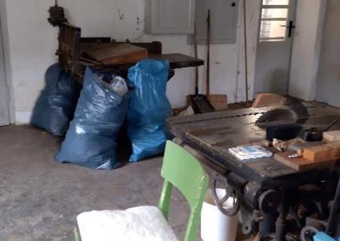 Das Objekt hat zwei Eingänge, einen für die Büroeinheit im Erdgeschoss und der zweite für die darüberliegende Wohneinheit. Im Erdgeschoss ist ein großes Büro mit angrenzender Küche und Bad mit WC. Vom Flur haben Sie einen direkten weg in die Tischlerei.