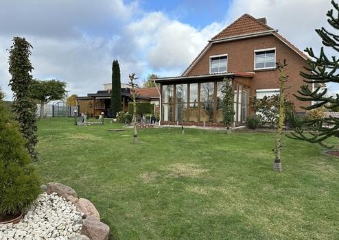 Hier erwerben Sie ein geklinkertes Einfamilienhaus auf einem weitläufigen und gepflegtem Anwesen mit liebevoll eingearbeiteten Details. Das Wohnhaus mit gehobener Ausstattung wurde 1995 mit 24 cm starken Kalksandsteinen gemauert, mit einer 80 mm Dämmung und Verklinkerung erbaut. Ein Wintergarten und ein Kamin tragen zu einer erholsamen Wohnatmosphäre bei. Das Bad ist mit Marmorfliesen ausgestattet. Das gepflegte Anwesen verfügt auch über einen Nutzgarten und ein Gewächshaus. Ca. 5.500 l Regenwasser können gespeichert und zur Bewässerung genutzt werden. Zwei Garagen und viel Nebengelass sorgen für Stauraum und vielfältige Nutzungsmöglichkeiten. Das 45 Grad geneigte Krüppelwalmdach ist mit Betondachsteinen eingedeckt und wärmegedämmt. Ins Obergeschoss gelangen Sie über eine 1/4 gewendelte Stahlhandlauftreppe mit aufmontierten Holzstufen.