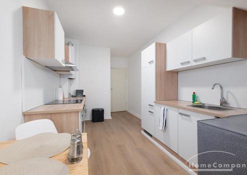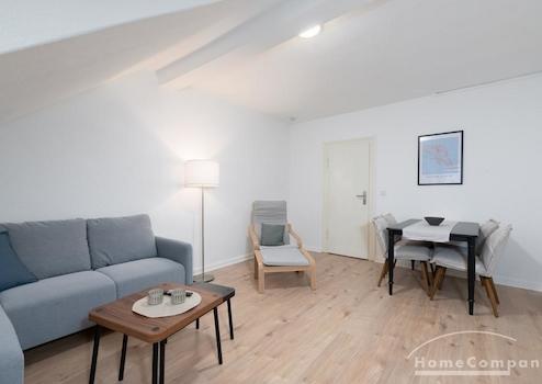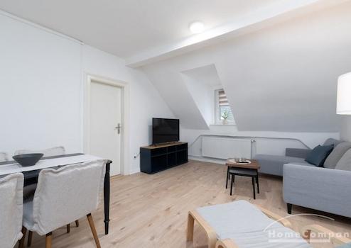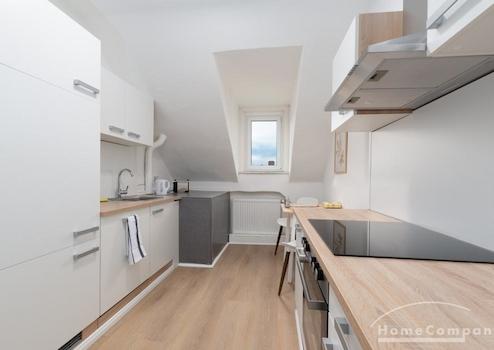 2 Zi.Whg., möbliert, 4. OG (DG, mit leichten Schrägen). Komplett und hochwertig ausgestattet. Miete inkl. Neben- und Energiekostenpauschale sowie Internt-Anschluss (Highspeed Wifi / Glasfaser) 2150,- €. Nur für Nichtraucher. Freies Parken an der Straße.