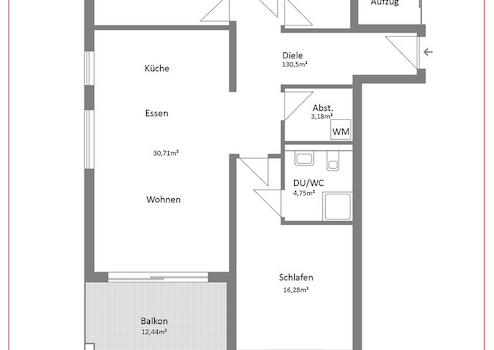 4 Zimmer mit Balkon (1/2) = ca. 104,81 qm mit folgender Aufteilung