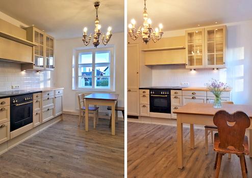 • Bodenarten: Originale, aufbereitete Holzdielen, originale Fliesen im Flur, moderne Fliesen in Küche und Bad