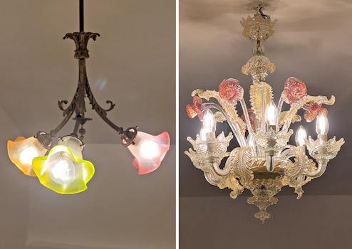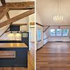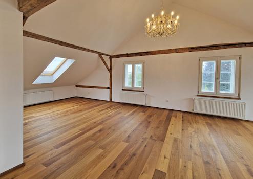 • Bodenarten: Originale, aufbereitete Holzdielen, moderne Fliesen im Bad