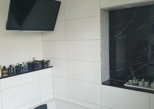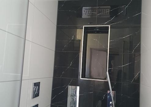 •Whirlpool-Badewanne plus Regendusche: Für entspannende Momente und Wellness im eigenen Zuhause.