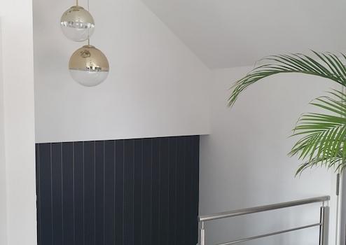 •Moderne Farbgestaltung: Die stilvolle schwarz-weiße Farbgebung verleiht dem Haus eine zeitgemäße und elegante Atmosphäre.