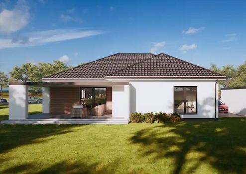 Altersgerechtes Wohnen ist in diesem Bungalow perfekt umsetzbar. Er ist ideal für drei oder vier Personen. Das geräumige Badezimmer sorgt für Komfort. Die offene Küche lädt zu geselligen Kochabenden ein. Die Raumaufteilung schafft flexible Nutzungsmöglichkeiten: Gäste- oder Arbeitszimmer lassen sich hier realisieren, und mit Bad und Gäste-WC kommt man sich nicht in die Quere.