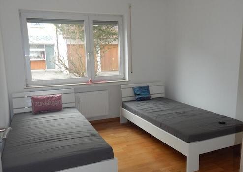 Wohn-/Esszimmer mit Balkon, zweiter Flur mit Schlafzimmer, Kinderzimmer, Gästezimmer, Bad