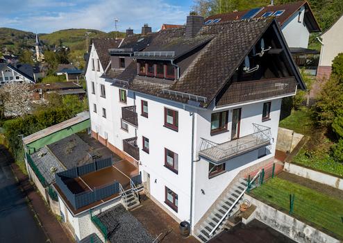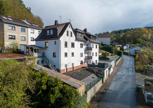 Waldnah mit Aussicht am Südost-Hang | Doppelhaushälfte in Bad Endbach-Hartenrod | Baujahr 1951, Anbau von 1983, Aufstockung von 1987, Umbauten | mit anderer Haushälfte auf circa 950 m² Grundstück | Untergeschoss mit 3 Räumen, Küche, Bad, WC zum Wohnen ausgebaut | Erdgeschoss mit 2–3 Räumen, Küche, Dusche/WC | Dachgeschoss mit 5 Räumen | circa 145 m² Wohnfläche |Teilkeller | Terrasse | Renovierungsbedarf | 50.000 € Mindestgebotspreis | provisionsfrei (#191941)