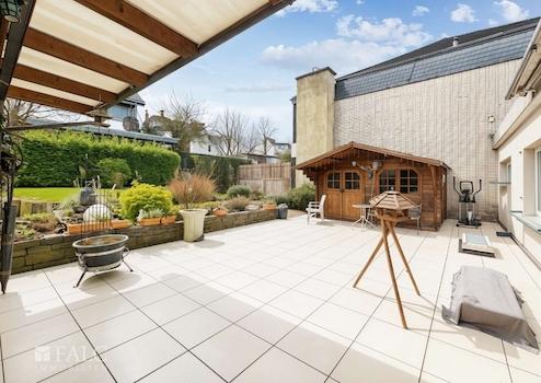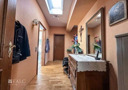 Die Wohnung befindet sich im 1. OG und verfügt über ca. 180 m² Wohnfläche mit einer ca. 105 m² großen Terrasse mit Blick in den Garten. Sie besteht aus 3 Schlafzimmern, einem Büro, zwei Bädern, Gäste-WC und einem geräumigen Wohn- und Essbereich mit gemütlichem Kamin. An die große Küche grenzt der Hauswirtschaftsraum. Zwei oder mehr Autos finden auf den Stellplätzen direkt am Garten platz. Ein Wegerecht über das Nachbargrundstück macht dies möglich. Die Wohnung ist derzeit noch bewohnt, kann aber bei Bedarf nach Absprache frei werden.