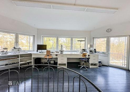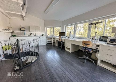 Die untere Etage beherbergt eine seit vielen Jahren etablierte Zahnarztpraxis, die aktuell fest vermietet ist. Mit einer jährlichen Nettomieteinnahme von ca. 22.500 € bietet Ihnen diese Einheit eine sichere Einnahmequelle. Ergänzt wird die Praxis durch einen angeschlossenen, eigenständigen Bereich für einen Zahntechniker, der sich über zwei Etagen erstreckt – funktional, durchdacht und vielseitig nutzbar.