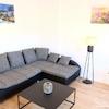 Das Wohnzimmer ist gemütlich eingerichtet mit einer Couch (3. Schlafplatz, keine ausziehbare Schlafcouch), einem Sonos WLan-Lautsprecher und dem besagten Schreibtisch inkl. Bürostuhl und induktivem Laden für Mobiltelefone. Ein TV-Schrank mit einem 55-Zoll-Smart-Flachbildfernseher (Standard-Kabel-TV) ist ebenfalls vorhanden.