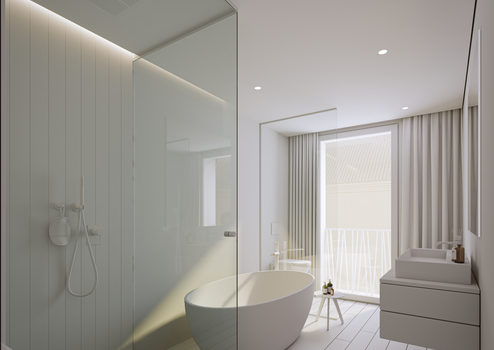 Eines ist mit Dusche und Waschmaschinenanschluss ausgestattet, das andere verfügt über eine Badewanne.