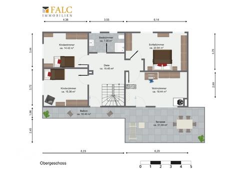 - Diele mit lichtdurchflutetem Treppenhaus, ca. 19,45 m²