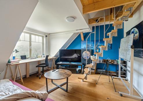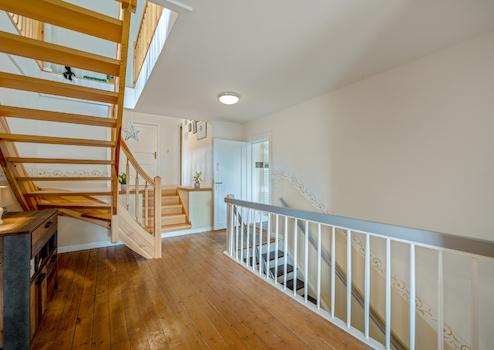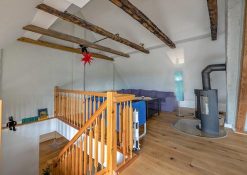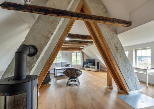 So kombinieren sich moderne Bäder mit offenen Dachbalken, massive Dielenböden mit luftigen Raumhöhen.