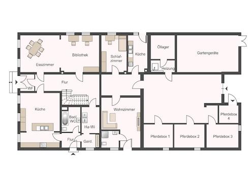 Für Ihre individuellen Wünsche stehen auf dem Grundstück mit Haupthaus und Stallgebäude ca. 8.811 qm zur Verfügung, weitere Flächen können ggf. gepachtet werden Wiesen und Weiden).