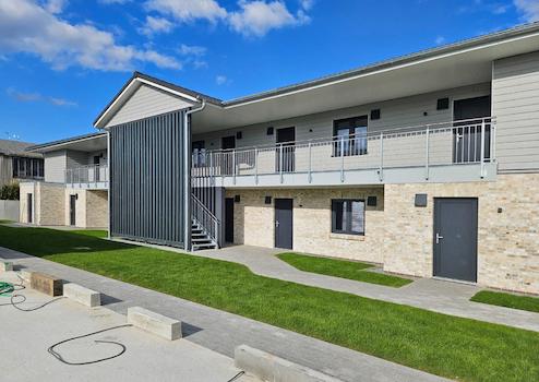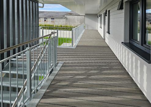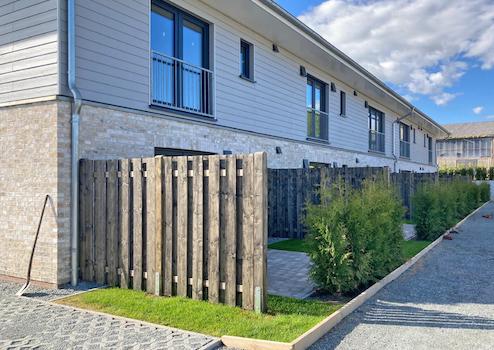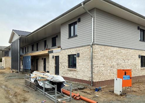 Das Gebäude besteht aus einem Holzständerwerk und ist im Erdgeschoss mit schönen Klinkersteinen verblendet, während die Fassade im Obergeschoss mit Cedral verkleidet ist.