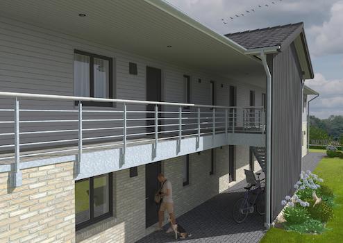 Es entstehen 8 Zweieinhalb/Dreizimmer-Wohnungen mit Größen zwischen 58 qm und 72 qm sowie 4 gepflasterte Terrassen von jeweils 12qm Fläche. Die Wohnungen verfügen über einen geräumigen Wohn-Essbreich mit Küchenzeile und ein Bad mit WC, Waschbecken und Dusche sowie 2 schöne Schlafzimmer.