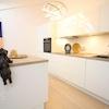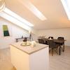Die Wohnung verfügt über eine voll ausgestattete Einbauküche mit Herd, Ofen, Cerankochfeld, Mikrowelle, Geschirrspülmaschine und Kühlschrank.