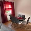 3 Zi.Whg., 1. OG, möbliert. Das dritte Zimmer wird je nach Bedarf bzw. Absprache ausgestattet. Eigener Garten. Miete 1500,- € inkl. Nebenkosten. Hzg. und Strom sind sep. nach Verbrauch zu zahlen (ca. 200,- €). Etwas höhere Miete bei 2 bzw. 3 Personen, derzeit. Nur für NR.