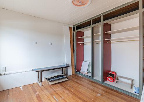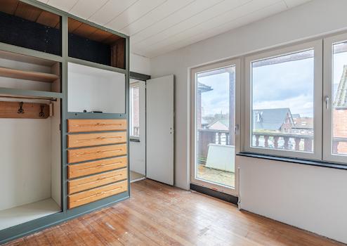 Drittes Schlafzimmer mit Einbauschrank und Gaube.