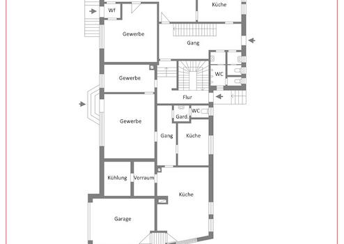 Dieses Objekt verfügt im Erdgeschoss über eine Fläche von ca. 194 qm, ehemals Metzgerei und Gaststätte mit Nebenräumen.