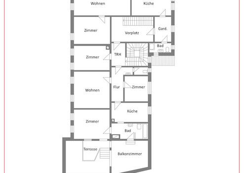 Außerdem könnten Sie ggfs. anbauen oder mit den genehmigten zu erwerbenden Plänen ein Mehrfamilienhaus mit rund 1.100 qm Wohnfläche umsetzen.