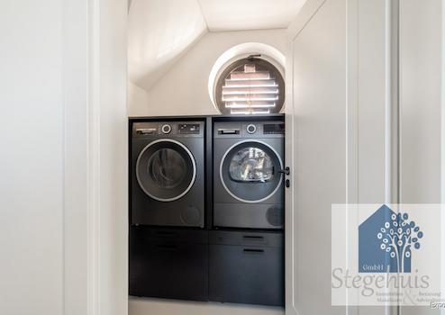 Die Ausstattung oben ist genauso schön wie unten. Die glatten Gussböden, die einheitlichen Fensterverkleidungen und die Verwendung von Farben setzen hier die gleiche Atmosphäre fort. Es gibt 3 schöne Schlafzimmer, von denen die 2 geräumigen Schlafzimmer (1 mit Einbauschränken) auf der Rückseite beide Zugang zum geräumigen Balkon haben. Das Schlafzimmer auf der Rückseite verfügt zusätzlich über 2 Einbauschränke. Das moderne Badezimmer verfügt über einen breiten Waschtischschrank mit Doppelwaschbecken, eine ebenerdige Dusche mit Sunshower und einen zusätzlichen Schrank für Ablagefläche. Der Abstell-/Waschraum auf dieser Etage rundet das Raumangebot sicherlich ab.