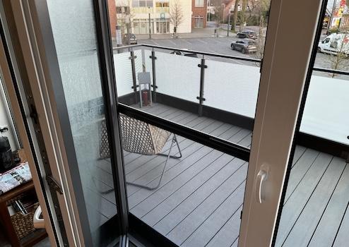 - Balkon mit Stahlbrüstung mit satinierter Glasfüllung