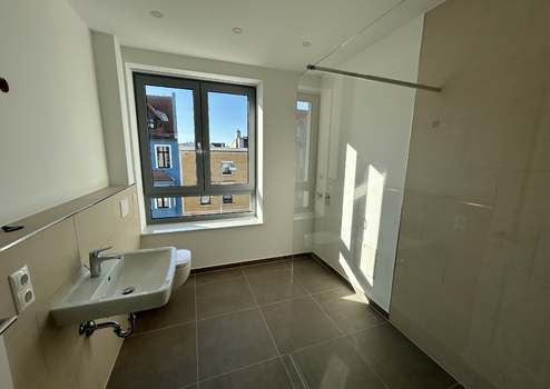 Das Badezimmer ist mit einer modernen Dusche ausgestattet und verfügt über ein Fenster, das für Tageslicht und eine angenehme Belüftung sorgt. Die Fußbodenheizung schafft ein behagliches Wohnklima in allen Räumen und sorgt für höchsten Wohnkomfort.
