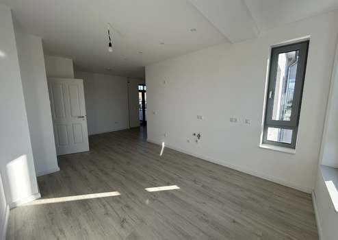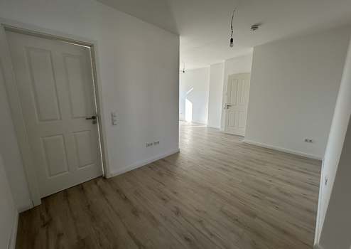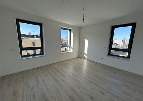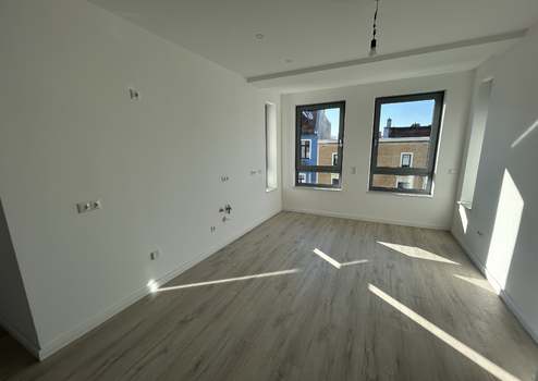 Das Herzstück der Wohnung ist der offene Wohn- und Essbereich, der viel Platz für individuelle Gestaltungsmöglichkeiten bietet. Große Fenster sorgen für eine helle und freundliche Atmosphäre, während die elektrischen Rollläden für Privatsphäre und zusätzlichen Komfort sorgen.