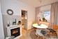 Vom Eingang aus gelangt man in den zentralen Flur. Das gemütliche Wohnzimmer mit einer Couchgarnitur und TV ist offen mit dem Esszimmer verbunden. Der Elektro-Kamin sorgt für eine angenehme Atmosphäre. Daneben befindet sich die vollausgestattete moderne Küche, die keine Wünsche offen lässt. Die Terrasse ist vom Wohnzimmer aus zu betreten und hat genug Platz für 2 Personen. Über den Flur erreicht man das Schlafzimmer mit Doppelbett und einem Kleiderschrank. Die Wohnung ist perfekt für 1 Person oder ein Paar.