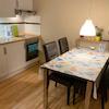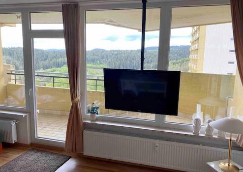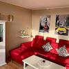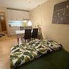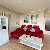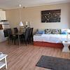 1 Wohnzimmer mit Schlafcouch und Essbereich, Flachbild-Fernseher,