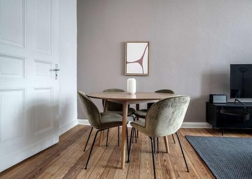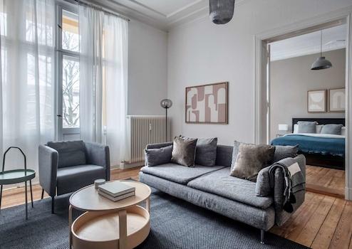 Die lichtdurchfluteten Wohnungen befinden sich überwiegend in einem gepflegten Zustand und zeichnen sich durch sorgfältig erhaltene Altbau-Details wie Flügeltüren, Dielenböden und teilweise Kachelöfen aus. Viele der Wohnungen verfügen zudem über Tageslichtbäder und Balkone. Einige Einheiten wurden renoviert, wobei moderne Ausstattungen in Bädern und Elektrik geschickt mit dem Altbaucharme integriert wurden.
