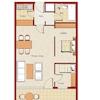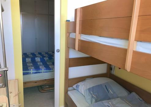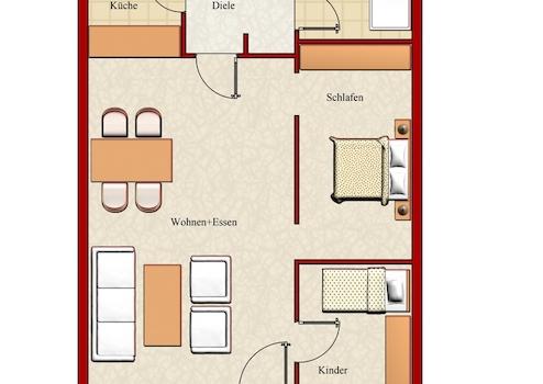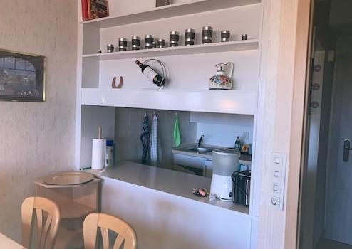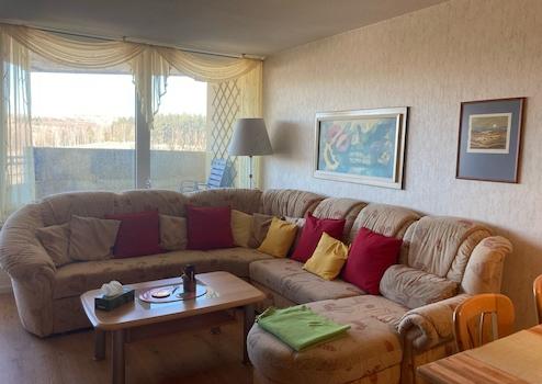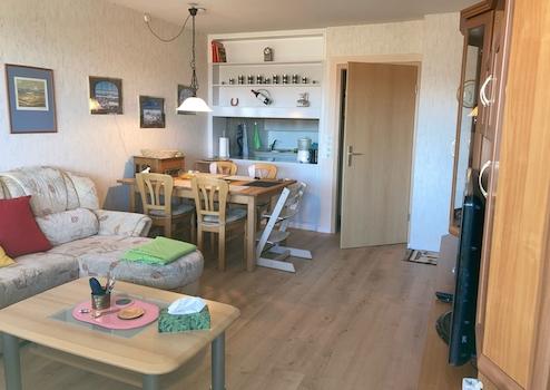 ID 0223725: 3 Raum Ferienwohnung mit großzügiger Raumaufteilung im 4.OG. Wohn- Essbereich mit Vinylbelag, Essplatz und Einbauküche. 2 separate Schlafzimmer, Wannenbad mit WC.