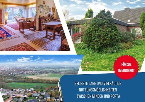 Dieses gepflegte Zweifamilienhaus mit Einliegerwohnung befindet sich in einer sehr gefragten und ruhigen Sackgassenlage zwischen Minden und Porta. Das im Jahr 1969 erbaute Haus erstreckt sich über zwei Etagen und bietet eine Gesamtwohnfläche von ca. 218 m². Zusätzlich steht eine Nutzfläche von ca. 120 m² zur Verfügung. Die Eigentümer haben immer wieder Renovierungsarbeiten durchgeführt und sich ein gemütliches Zuhause geschaffen.