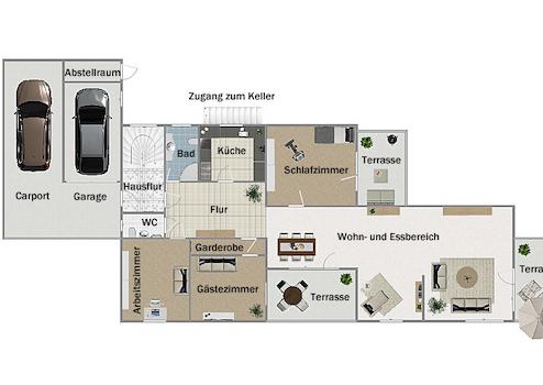 - Garage und großer Carport für zwei Pkw sowie eine Auffahrt mit Platz für weiteren Stellplatz