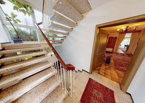 Die Immobilie verfügt über insgesamt 8,5 Zimmer - durch die klassische Aufteilung kann es sowohl komplett von einer großen Familie oder in zwei Einheiten getrennt genutzt werden. Über das Treppenhaus können die Wohneinheiten im Erd- und Obergeschoss separat betreten werden. Eine getrennte Nutzung bzw. Vermietung kann somit realisiert werden. Der Zugang zum Keller könnte ebenfalls gemeinschaftlich genutzt und einzelne Räume zugeordnet werden. Der Waschkeller könnte von allen Parteien genutzt werden.