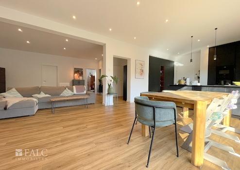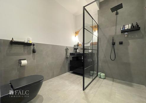 Beim Betreten der Wohnung gelangen Sie direkt in die stilvolle, offene Küche, die fließend in den knapp über 50 m² großen Wohn- und Essbereich übergeht. Dank bodentiefer Fenster ist dieser Bereich lichtdurchflutet und bietet direkten Zugang zur Terrasse und dem weitläufigen Garten – ein perfekter Ort zum Entspannen und Genießen.