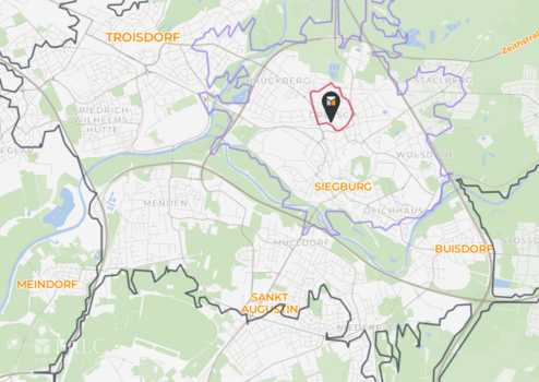 Ein herausragendes Merkmal dieser Lage ist die hervorragende Anbindung an den öffentlichen Nahverkehr. Die nächste Bushaltestelle ist nur etwa 130 Meter entfernt, was eine schnelle und unkomplizierte Verbindung in die umliegenden Stadtteile und ins Zentrum von Siegburg ermöglicht. Für Pendler ist der Bahnhof Siegburg/Bonn in ca. 1,2 Kilometern erreichbar, von wo aus regelmäßige Zugverbindungen in die umliegenden Großstädte bestehen.