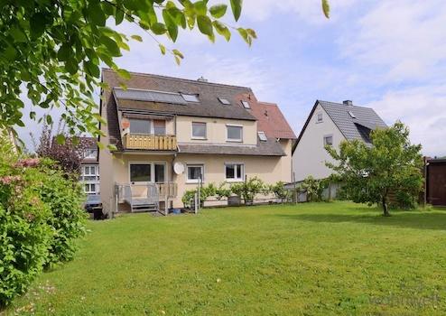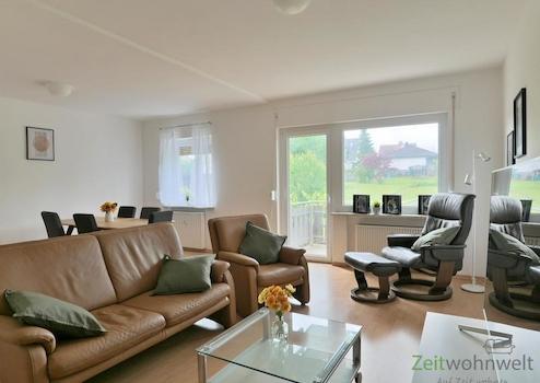 ### Please note the availability date! Bitte das Verfügbarkeitsdatum beachten! ### höbsche möblierte Wohnung in ruhiger Wohnlage in Waldkappel; WLAN; großes Wohnzimmer mit modernen rustikalen Möbeln, Sofa, Esstisch, ...