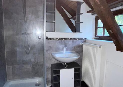 Eine offene Holztreppe führt sie ins Dachgeschoss dort erwarten Sie zwei Schlafzimmer und ein sehr geräumiges Studiozimmer, sowie ein weiteres Duschbad.